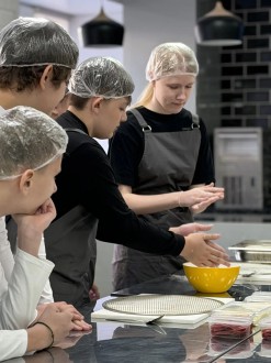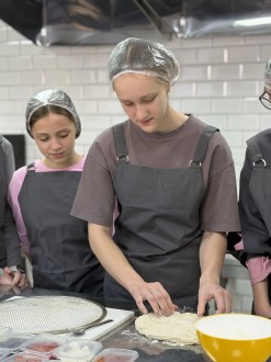 За дело взялся В.В.Астроушко - преподаватель специальности «Поварское и кондитерское дело». Под его руководством школьники освоили один из самых элегантных видов итальянской выпечки - римскую пиццу. Тонкое тесто, идеальное распределение начинки, аппетитный хруст - всё как у профессионалов!