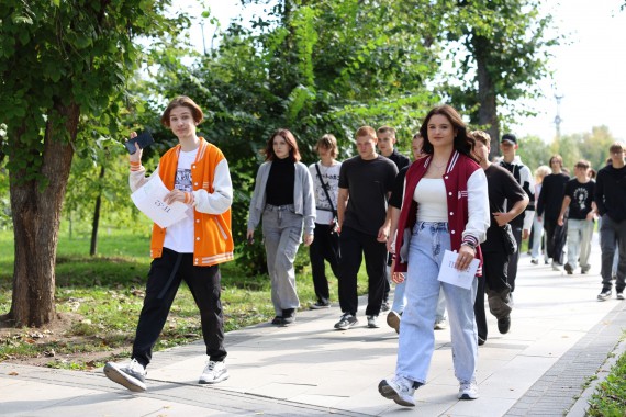 Первокурсники проходили станции по маршруту, состоящему из трех контрольных точек: Главный корпус, Ленина, 38; Общежитие, Комсомольский, 104; Изумрудный парк.