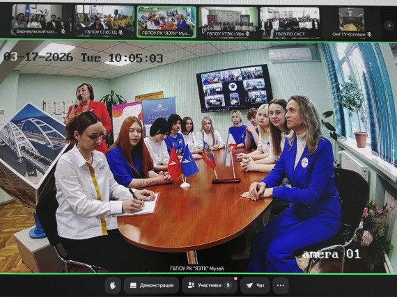 17 марта состоялся межрегиональный #Телемост "Крым. Весна. Россия", посвященный Дню воссоединения Крыма с Россией, участниками которого стали представители администрации, преподаватели и студенты ПОО: Ялтинский экономико-технологический колледж; Севастопольский колледж сервиса и торговли; Минский политехнический колледж; Новосибирский электромеханический колледж; Уфимский торгово-экономический колледж; Колледж Омского государственного технического университета; Омский автотранспортный колледж; Барнаульский кооперативный техникум.